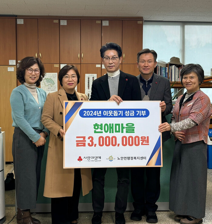 문혜인 노안면장은 “경제적으로 어려운 상황에서도 이웃사랑을 실천해 주신 현애마을 주민들에게 깊은 감사를 드린다”며 “기탁된 성금은 노안면 지역사회보장협의체와 협력해 필요한 곳에 소중히 사용하겠다”고 전했다.