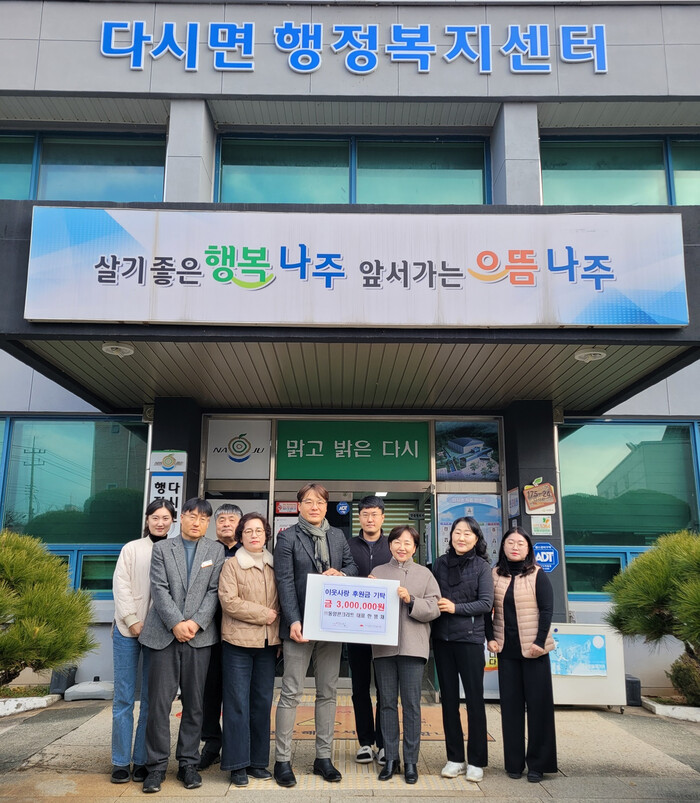[나주=황승순 기자]전라남도 나주시 다시면(면장 박은희)은 최근 관내 기업인 ㈜동양콘크리트(대표 한병채)와 대신기업(대표 최영길)에서 각각 300만원과 200만원의 이웃돕기 성금을 기탁했다고 31일 밝혔다.