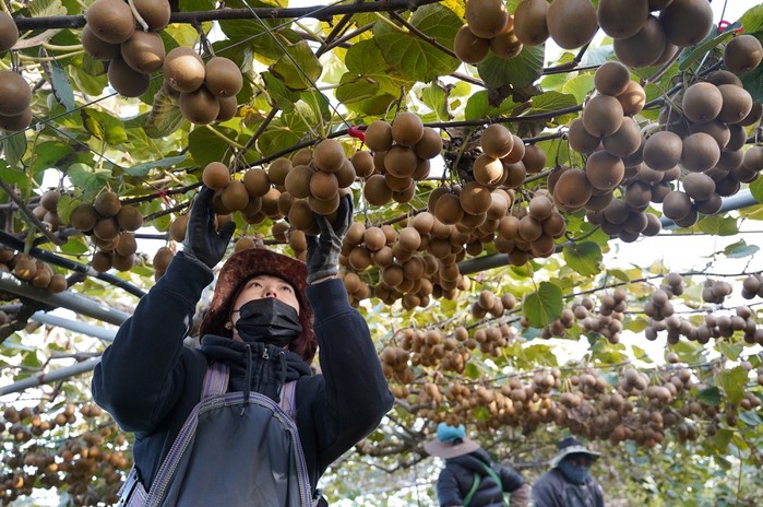 | ▲ 당도 16브릭스를 자랑하고 있는 해남산 참다래를 수확하고 있는 산이면 진산리 김정헌 농가 / 사진=해남군 제공 |