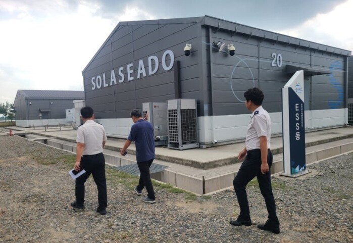 | ▲ 해남소방서예방안전과, 지난 3일 추석 연휴 대비 ESS저장시설 화재 예방을 위해 솔라시도 태양광발전소 안전지도 / 해남소방서 제공 |