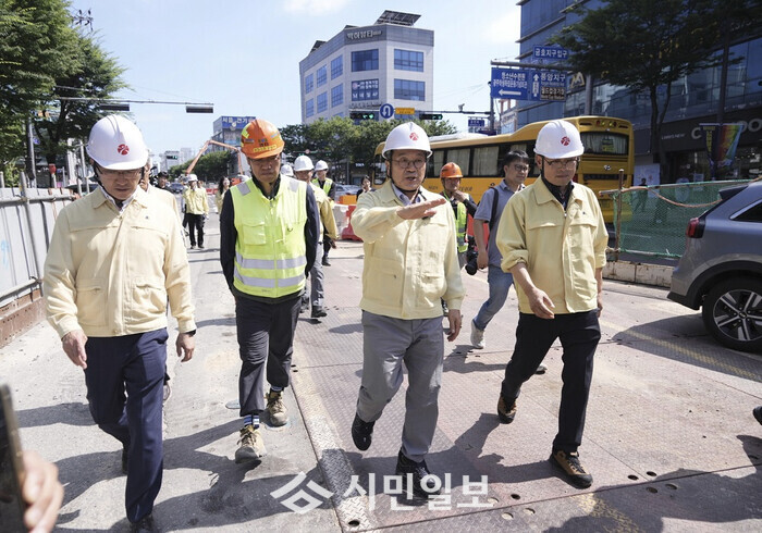 강 시장은 또 인근 상가 피해를 최소화하기 위해 야간작업을 실시하는 구간 공사 진행 상황을 점검했다. 공사 민원을 제기하는 인근 상가를 방문, 시민의 어려움을 직접 들었다.