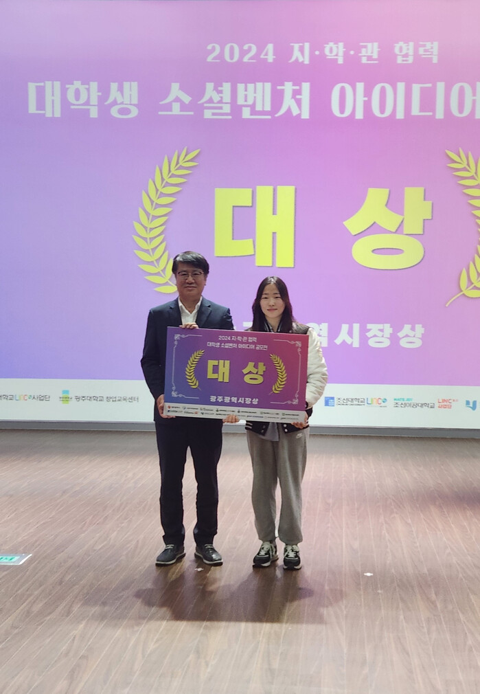 대상(광주광역시장상)은 ‘구조용 에어매트의 낙하 위치를 정확하게 알 수 있게 도와주는 재귀반사 스티커’ 아이디어를 낸 ‘에어키퍼(전남대)’ 팀이 차지했다. 학과 전공 지식을 바탕으로 창의적인 비즈니스 아이디어와 지역문제 해결을 위한 우수한 혁신성을 인정받았다.