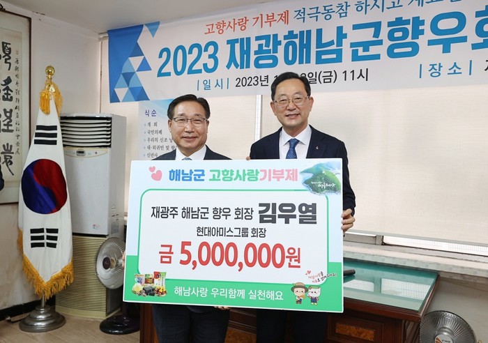 김우열 회장은 “올해부터 시작된 고향사랑기부제에 향우들의 관심이 뜨겁다”며 “오늘 기부를 시작으로 향우회원들의 기부가 이어져 고향 해남발전의 마중물로 소중히 쓰이기를 바란다.”고 전했다.