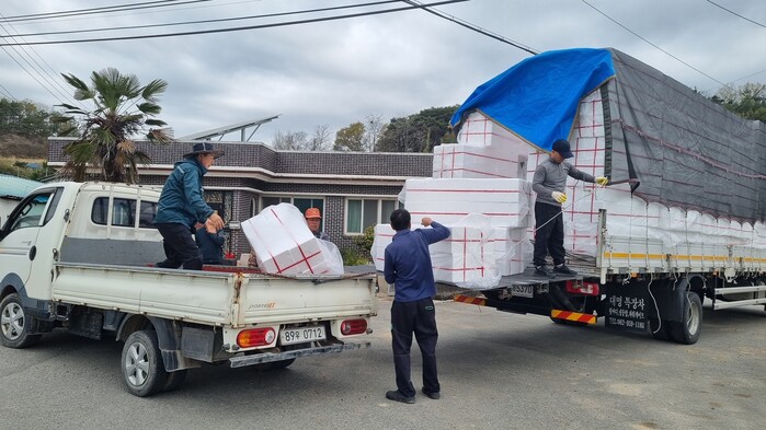 | ▲ 갯벌낙지 전용포장재를 관내 어가에 지원하고 있다 ((출처=무안군) |