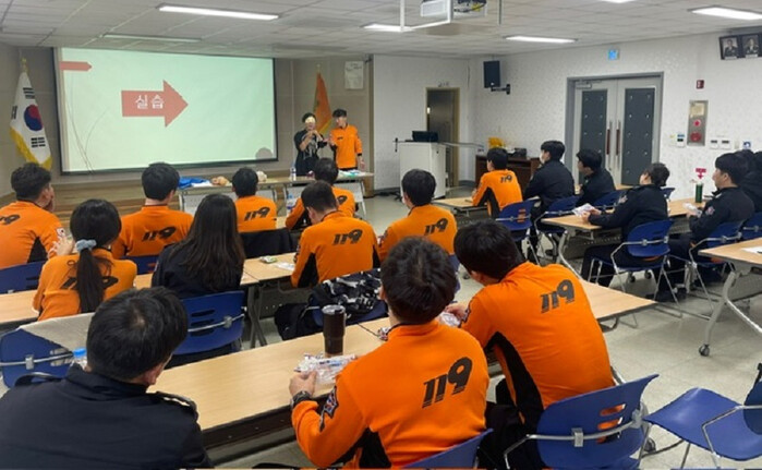 | ▲ 강진소방서, 13일 강진소방서 대회의실에서 구급대원 대상 조산사 초빙 응급분만 특별교육 실시 / 강진소방서 제공 |