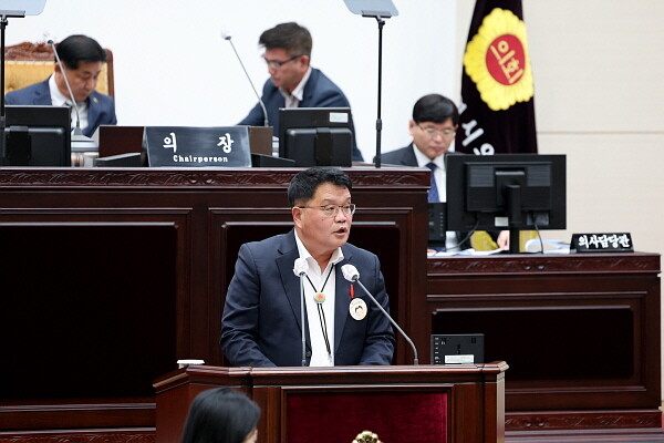 | ▲ 인천시의회 신동섭 의원이 ‘제298회 인천광역시의회 임시회 제2차 본회의’ 시정질문을 통해 인천시 내 8개 자치구의 재원 확충방안을 촉구하고 있다. (사진제공=인천시의회) |
