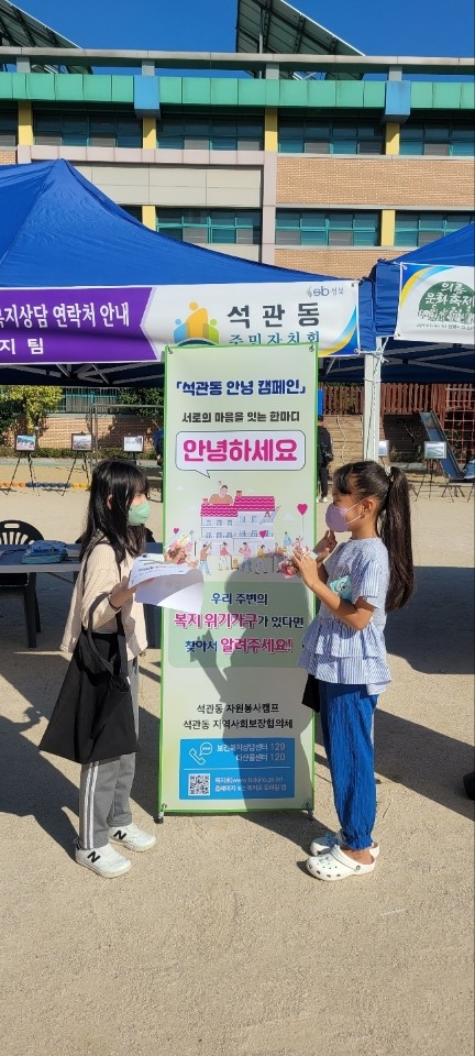 서울 성북구 석관동 자원봉사캠프 및 지역사회보장협의체는 최근 의릉문화축제를 개최하는 중에 석관초등학교에서 이웃간 관심과 관계 맺기 홍보 캠페인인 ‘안녕 캠페인’을 전개했다. 사진은 안녕 캠페인을 하고 있는 어린이들의 모습. (사진제공=성북구청)