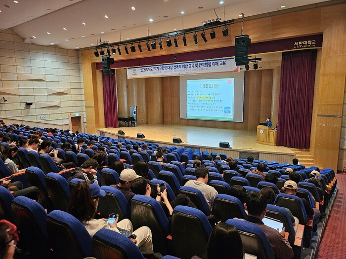 | ▲ 영암경찰서, 10일 세한대학교 구암관에서 중국 유학생 400명 대상 외국인이 꼭 알아야 하는 범죄 유형에 대한 범죄예방교육 / 영암경찰서 제공 |