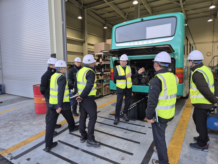 | ▲ 화성도시공사가 CEO 주관으로 동절기 대비 ‘동탄2버스공영차고지’을 점검실시하고 있다/사진제공=화성도시공사 |