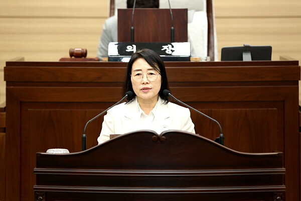 | ▲ 2일 장문정 의원이 제269회 임시회 제1차 본회의에서 의정자유발언을 통해 고령친화도시 조성 추진을 위한 정책을 제안하고 있다. (사진제공=인천시서구의회) |