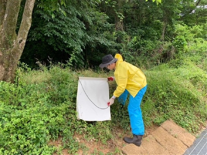| ▲ 광주보건환경연구원 관계자가 도심 공원에서 참진드기 서식 실태조사를 실시하고 있다. / 사진=광주광역시 제공 |