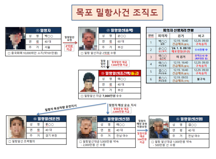 | ▲ 해경이 밝힌 밀항사건 조직도.(출처=목포해경) |