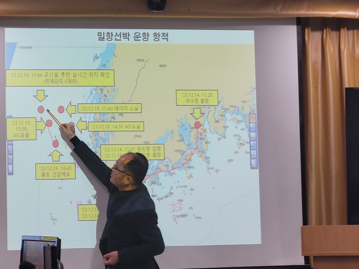 | ▲ 밀항자 검거 경위를 설명하는 목포해경 정보 외사과 외사계 최재욱 경감.(사진=황승순 기자 ) |