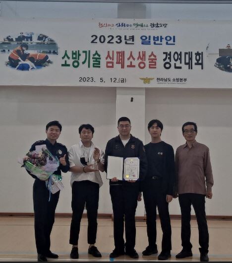 | ▲ 해남소방서, 전남소방본부 주관 제12회 일반인 심폐소생술 경연대회(일반·대학부) 참가 우수상 수상 기념촬영 / 해남소방서 제공 |