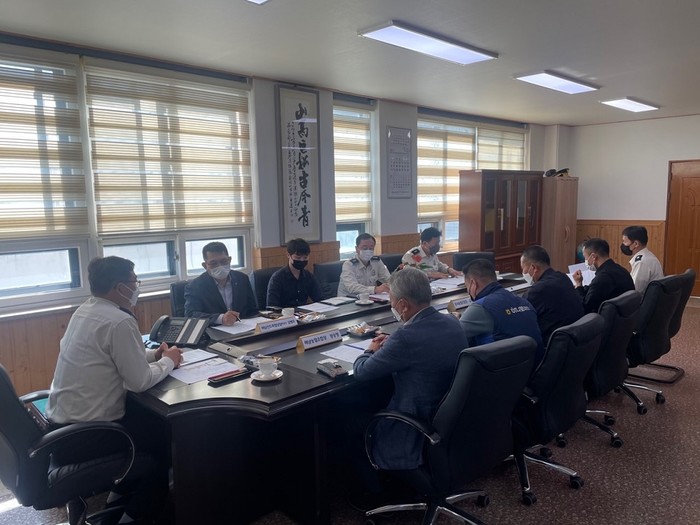 | ▲ 최형호 해남소방서장이 12일 관내 대형마트 관계자들과 화재 예방 간담회를 주재하고 있다. / 사진=해남소방서 제공 |