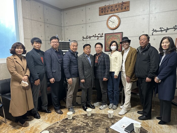 | ▲ 간담회가 끝난 뒤 참석자들과 기념촬영을 하고 있는 노윤상 의원(오른쪽 다섯 번째)과 정초립 의원(오른쪽 네 번째). (사진=노윤상 의원 제공) |