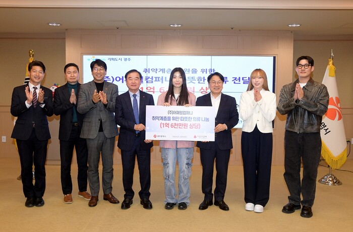 전달식에는 강기정 시장을 비롯해 ㈜어패럴컴퍼니 김민주 대표, 김한길 이사, 김이연 상무, 광주사회복지공동모금회 박철홍 회장 등이 참석했다.