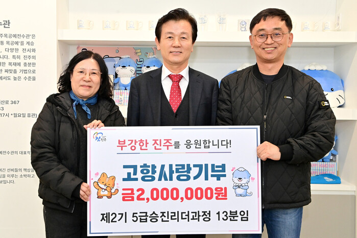진주시는 23일 지방자치인재개발원 제2기 5급 승진리더과정 제13분임 교육생 20여 명이 고향사랑기부금 200만 원을 전달해 왔다고 밝혔다.