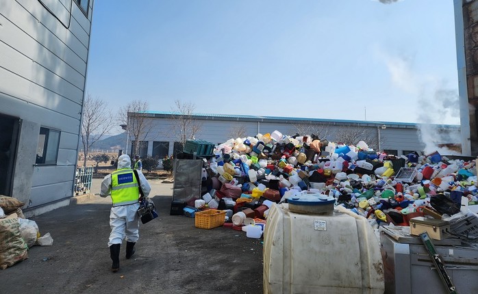 | ▲ 강진군이 지난 6일부터 해빙기 맞이 관내 월동모기 일제 방제를 실시하고 있는 가운데 쓰레기 소각장을 방역 하고 있다. |