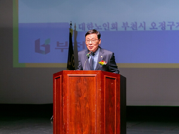 | ▲ 25일 김병전 부천시의회 의장이 (사)대한노인회 부천시 오정구지회 주관으로 열린 '제28회 노인의 날 기념행사'에 참석해 축사를 하고 있다. (사진제공=부천시의회) |