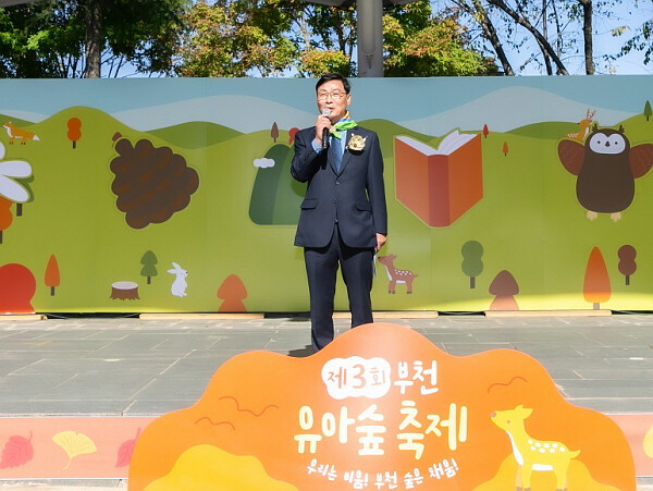 | ▲ 25일 김병전 부천시의회 의장이 원미산 진달래동산에서 열린 제3회 부천 유아숲 축제에 참석해 축사를 하고 있다. (사진제공=부천시의회) |