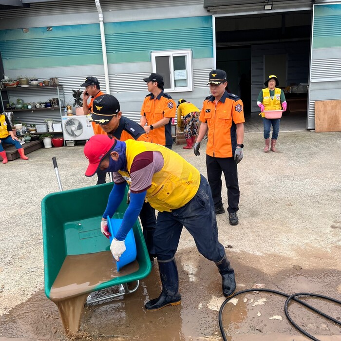 이번 현장지원은 소방서 직원과 의용소방대 등 100여 명이 참여한 가운데, 도목마을 등 침수 피해 주택들을 찾아 물에 젖은 가재도구 정리 및 실내‧외 토사 제거 등 전반적인 수해 복구 활동을 추진했다.