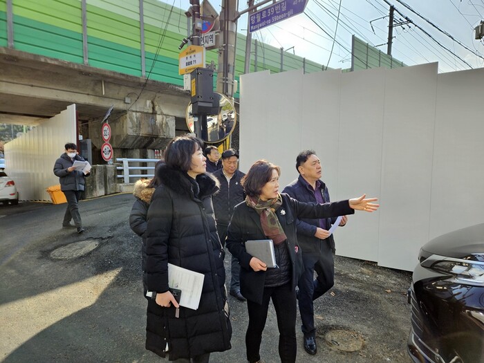 김재훈 경기 의정부 부시장이 관련 부서 팀장 및 직원들과 함께 호원천 생태하천 주변 환경정비 현장을 방문했다. 사진은 김 부시장(오른쪽)과 관계자들이 현장점검을 하고 있는 모습. (사진=의정부시청 제공)
