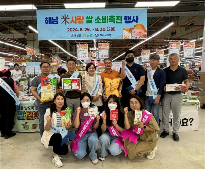 | ▲ 해남군 공직자, 지난 29~30 양일간 서울 농협창동유통센터에서 대도시 소비자와 함께하는 해남 米사랑 소비촉진 행사 기념촬영 / 해남군 제공 |
