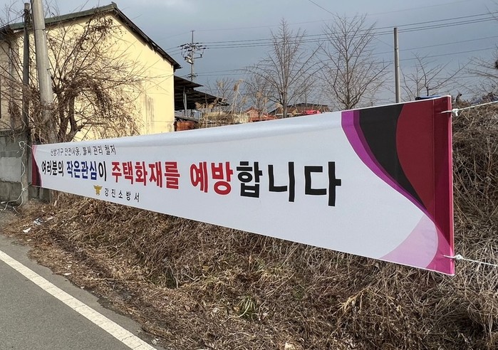 | ▲ 주택화재 예방 플래카드 게첨 / 강진소방서 제공 |