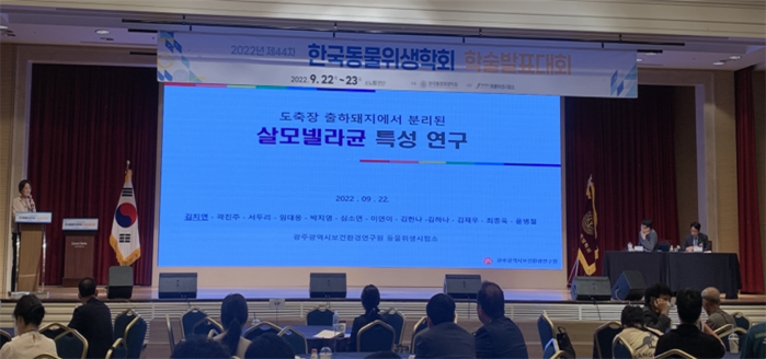 이번 연구발표는 ‘광주지역 도축장 출하돼지에서 분리된 살모넬라균 특성 연구’라는 주제로, 사람 식중독의 원인균인 살모넬라균과 도축장 출하돼지에서 분리된 살모넬라균의 특성을 비교해 돼지 사육농가의 예방 관리와 축산물의 선제적인 검사가 공중보건학적인 측면에서 필요하다는 점을 증명했다.