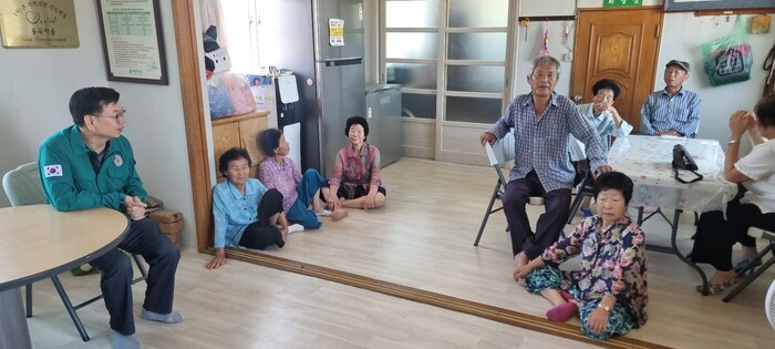 | ▲ 고광완 광주광역시 행정부시장은 4일 무더위쉼터로 운영되고 있는 광산구 용곡동 용곡경로당을 찾아 이용중인 마을 주민들을 대상으로 무더위 시간대 야외활동 자제 등을 당부하고 있다. /광주광역시 제공 |