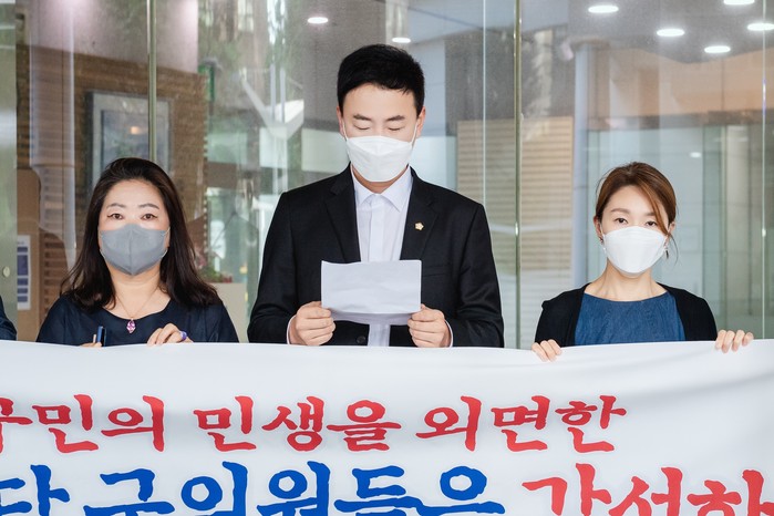 국민의힘 구의원들은 "코로나로 지친 소상공인과 지역 활성화를 위한 임시회가 조속히 개최될 수 있도록 민주당 구의원은 즉각 동참하라"고 말했다.