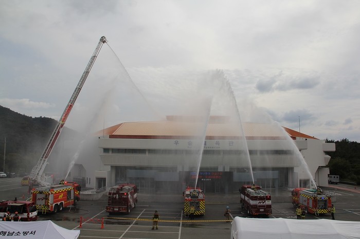 이번 훈련은 해남우슬체육관에서 원인미상의 폭발로 화재가 발생해 건물붕괴 및 다수사상자 발생을 가정해 진행했으며 소방서를 비롯해 해남군청 등 10개 유관기관과 민간단체가 참여해 효율적인 재난현장 대응능력 강화와 사고수습 능력을 배양했다.