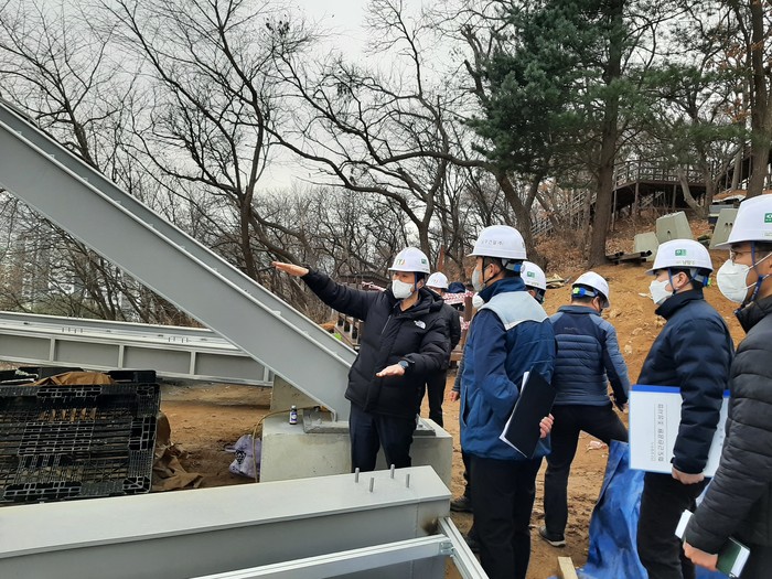 박부영 경기 남양주시장 권한대행이 최근 안전점검단과 함께 지역내 대형 건설공사장 안전점검을 실시했다. 박 시장 권한대행과 안전점검단은 공사 진행 상황을 비롯해 구조물 파손·균열 여부 등을 중점 점검했다. 사진은 이날 박 시장 권한대행(왼쪽)이 건설 공사현장에서 점검을 하고 있는 모습. (사진제공=남양주시청)