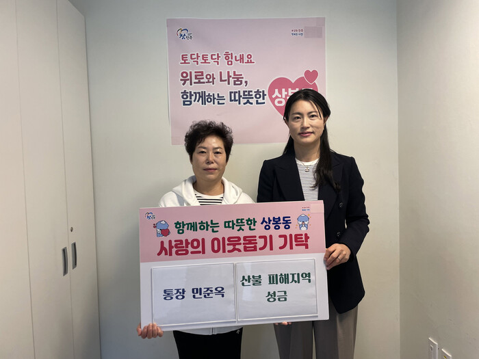 민준옥 통장은 “이번 대형 산불로 인해 피해를 입은 지역 주민들에게 조금이나마 도움이 되기를 바란다”며 “어려움을 겪고 있는 분들이 하루 빨리 일상으로 돌아갈 수 있기를 기원한다”고 말했다.