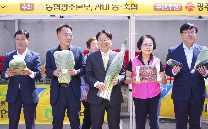 광주광역시(시장 강기정)는 12일 오후 농협 광주지역본부 주차장(광산구 무진대로 285)에서 ‘2024년 농축산물 금요직거래장터 개장식’을 했다.
