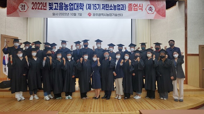 [광주=정찬남 기자] 광주광역시 농업기술센터는 7일 빛고을농업대학 제15기 저탄소농업과 졸업식을 개최했다.