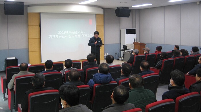 | ▲ 광주환경공단, 지난 23일, 공단홍보실에서 영산강과 광주천 일대의 시설물 및 조경 관리 작업을 위해 신규 기간제 근로자 45명 대상 산업안전교육 / 광주환경공단 제공 |