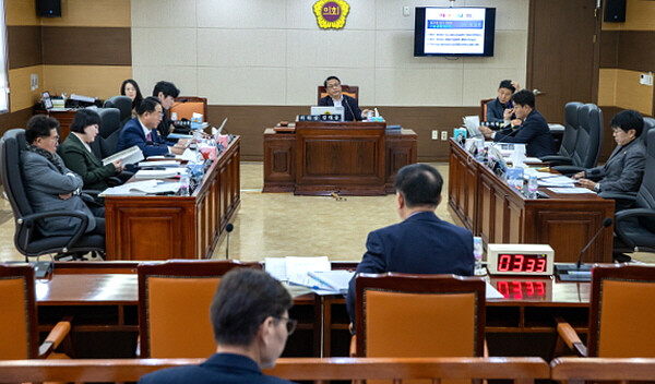 | ▲ 19일 2024년 도시철도건설본부 및 종합건설본부 소관 업무에 대한 행정사무감사가 진행되고 있다. (사진제공=인천시의회) |