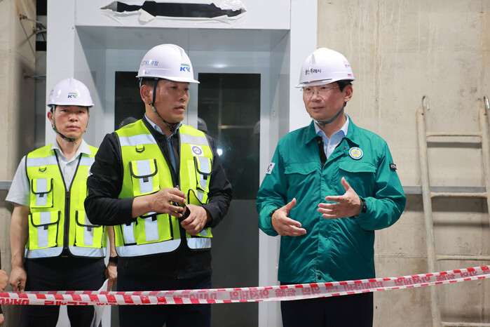 | ▲ . 이상일 용인특례시장은 23일 구성역 5번 출구를 방문해 승강기 설치 상황을 점검했다. |