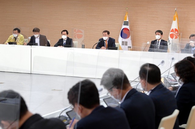 [광주=정찬남 기자] 이용섭 광주광역시장이 15일 오후 시청 중회의실에서 열린 확대 간부회의를 주재하고 새정부 국정과제 대책단을 바로 발족해서 시 핵심현안이 국정과제에 반영될 수 있도록 최선을 다해줄 것을 당부하고 있다. /광주광역시 제공