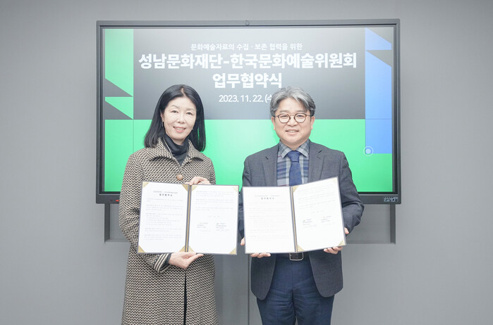 [성남=오왕석 기자] 성남문화재단(대표이사 서정림)이 한국문화예술위원회(위원장 정병국)와 문화예술자료의 체계적 보존과 관리 기반 마련을 위한 업무협약을 체결했다.