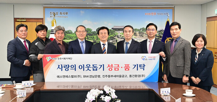진주시복지재단(이사장 이성갑)은 지난 2일 진주시청 기업인의 방에서 지역사회 기업·기관 및 단체들의 어려운 이웃돕기 성금·품 기탁식을 가졌다.