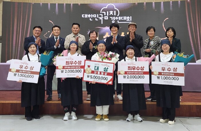 경연 결과, ‘다슬기 동김치’를 선보인 임란(광주광역시) 씨가 대통령상을 수상했으며 농림축산식품부 장관상 천순복(전남 나주) 씨의 ‘낙지양파김치’ 문화체육부 장관상 최후경(전남 여수) 씨의 ‘사과말랭이 갑오징어 돌산갓 보쌈김치’가 각각 수상의 영예를 안았다. 광주광역시장상은 최은임(광주광역시)·박현순(전북 전주) 씨가 수상했다.