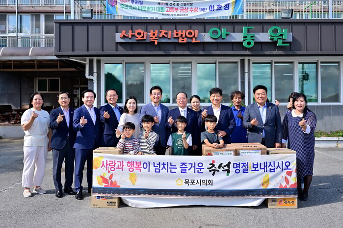 [목포=황승순 기자]목포시의회(의장 문차복)가 추석을 맞아 명절의 의미를 되새기고 어려운 이웃들과 온정을 나누고자 26일 관내 사회복지시설을 찾아 위문했다.