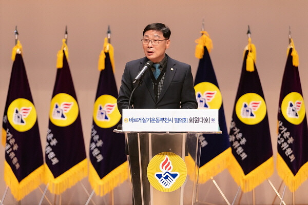 | ▲ 김병전 의장이 바르게살기운동 부천시협의회 회원대회에 참석해 축사를 하고 있다. (사진제공=부천시의회) |