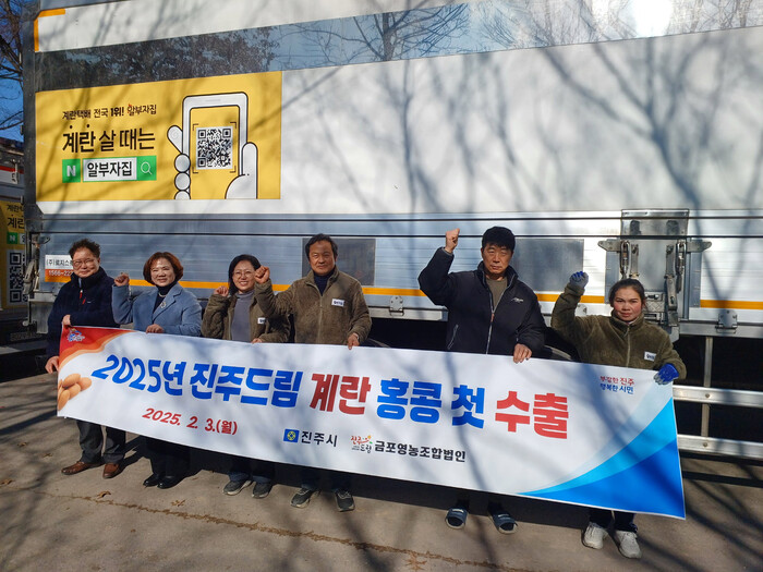 진주시는 3일 금포영농조합법인(대표 문국동)에서 진주드림 계란 11톤을 홍콩으로 올해 첫 수출하는 선적식을 가졌다.