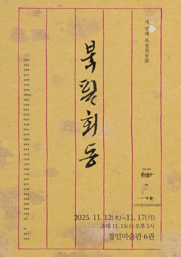 북경필방의 예술가그룹 전시인 ‘북필회동展’이 11월 12일부터 17일까지 서울 인사동 경인미술관 6관에서 개최된다.