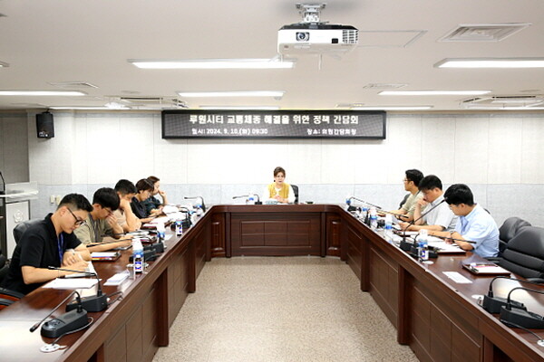 | ▲ 10일 김미연 의원 주재로 루원시티 교통체증 해결 대책 마련 간담회가 진행되고 있다. (사진제공=인천서구의회) |