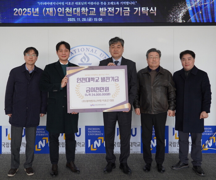 대아엔지니어링은 기체 펌프 및 압축기 전문 제조기업이며 이호곤 대표는 인천대 산업경영공학과 동문이다. 이번 기탁금은 산업경영공학과 기타 지정기금으로 사용될 예정이다.
